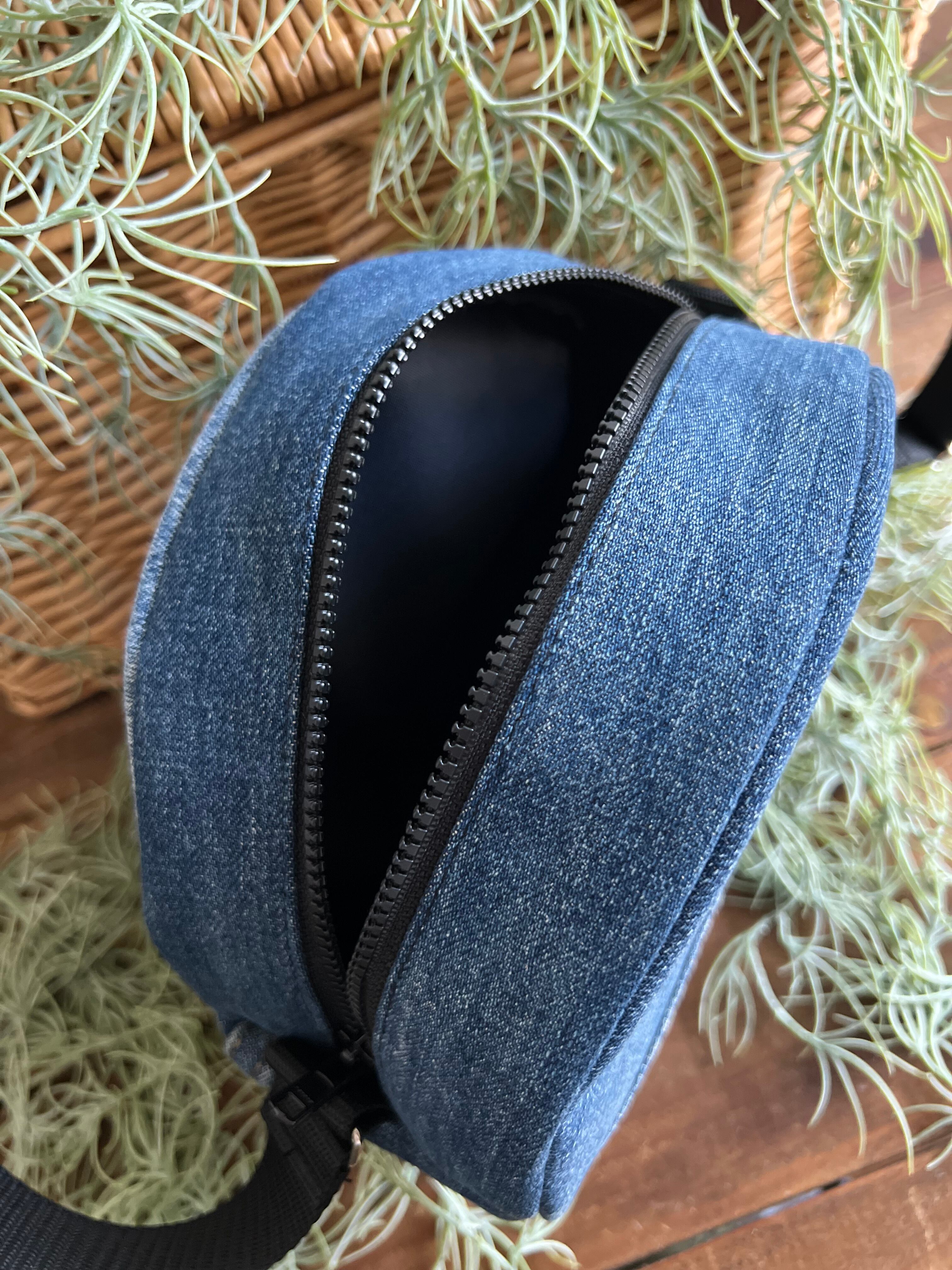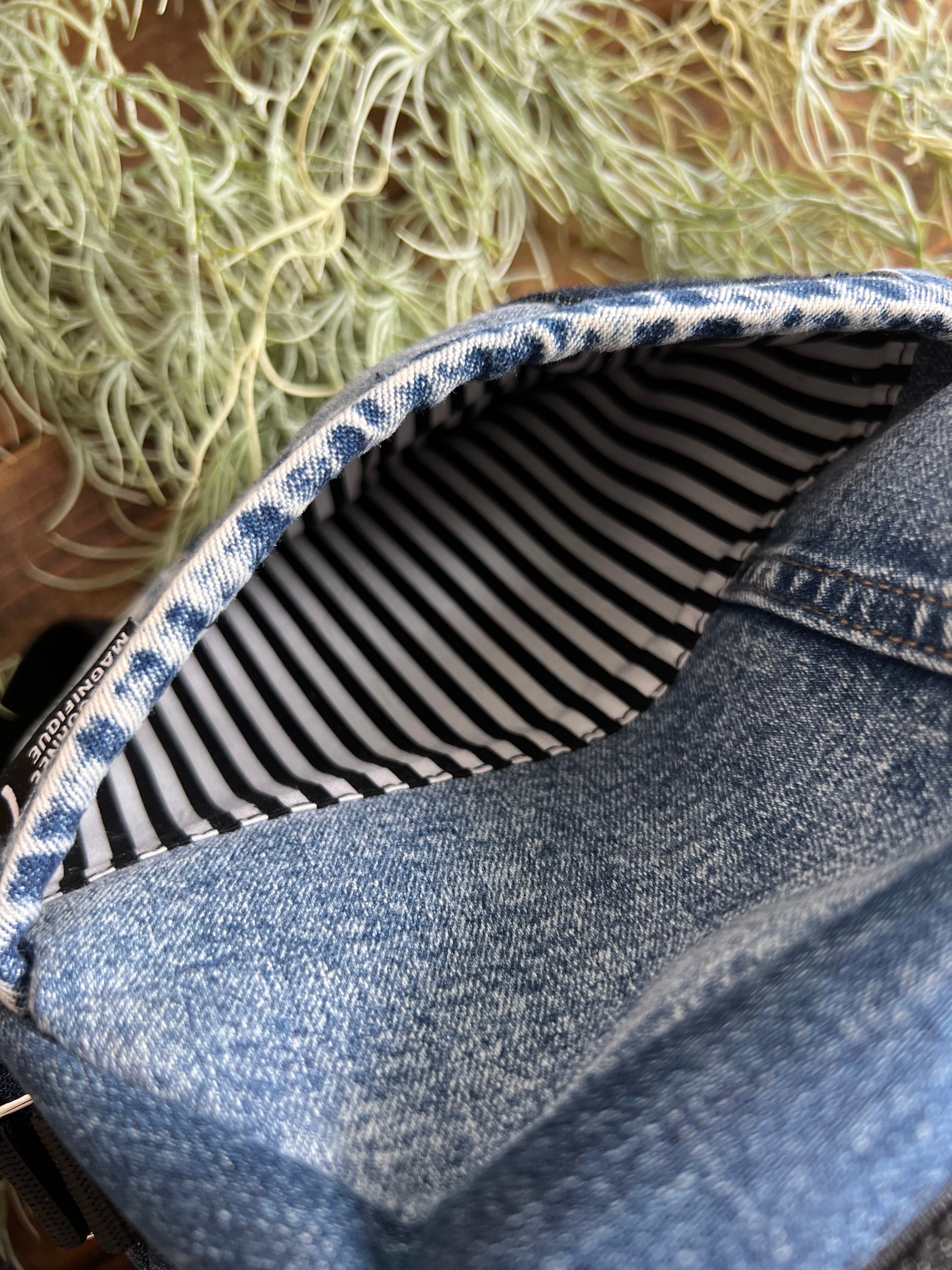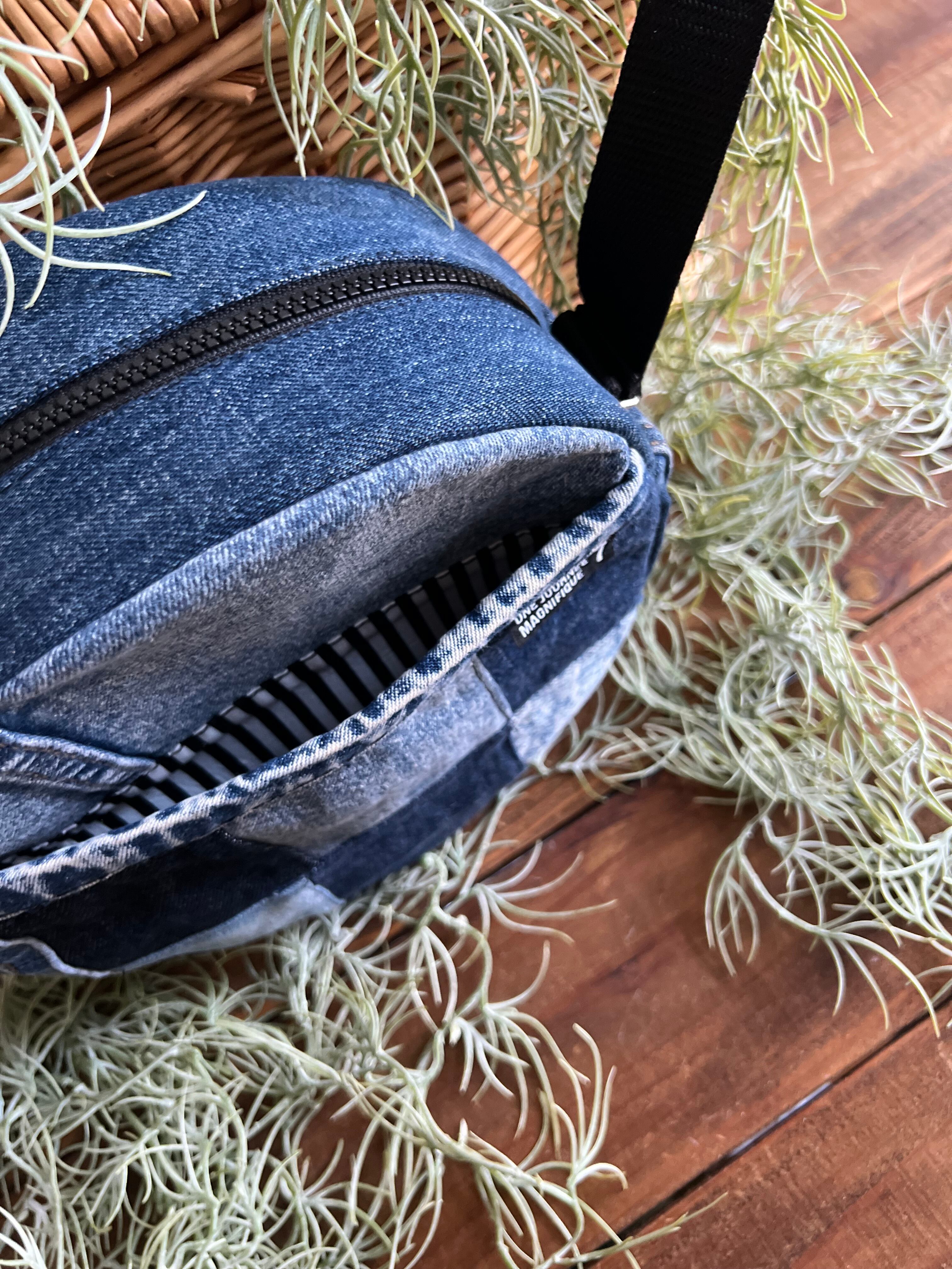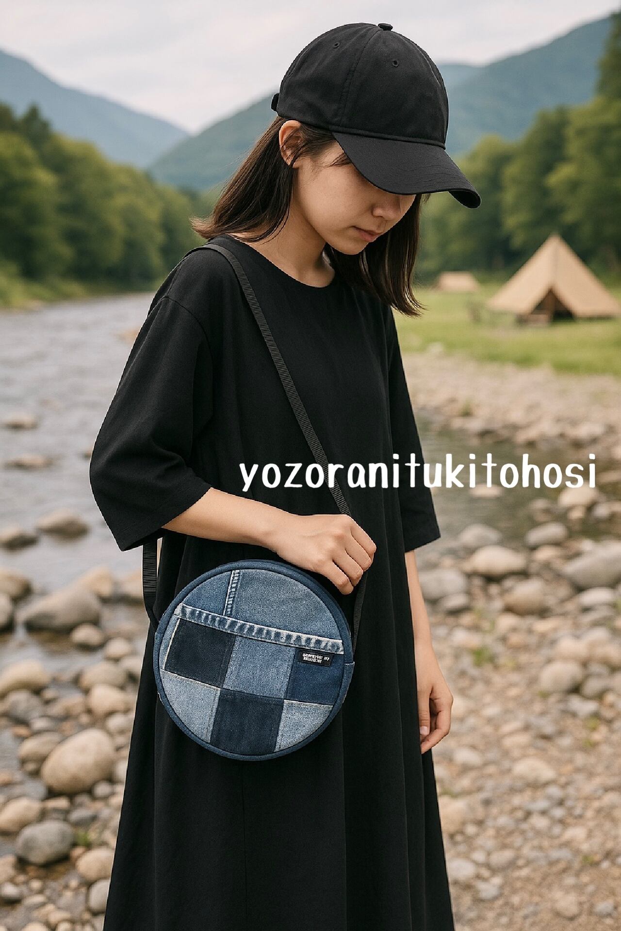 可愛いデニムリメイクのパッチワーク外ポケットあり