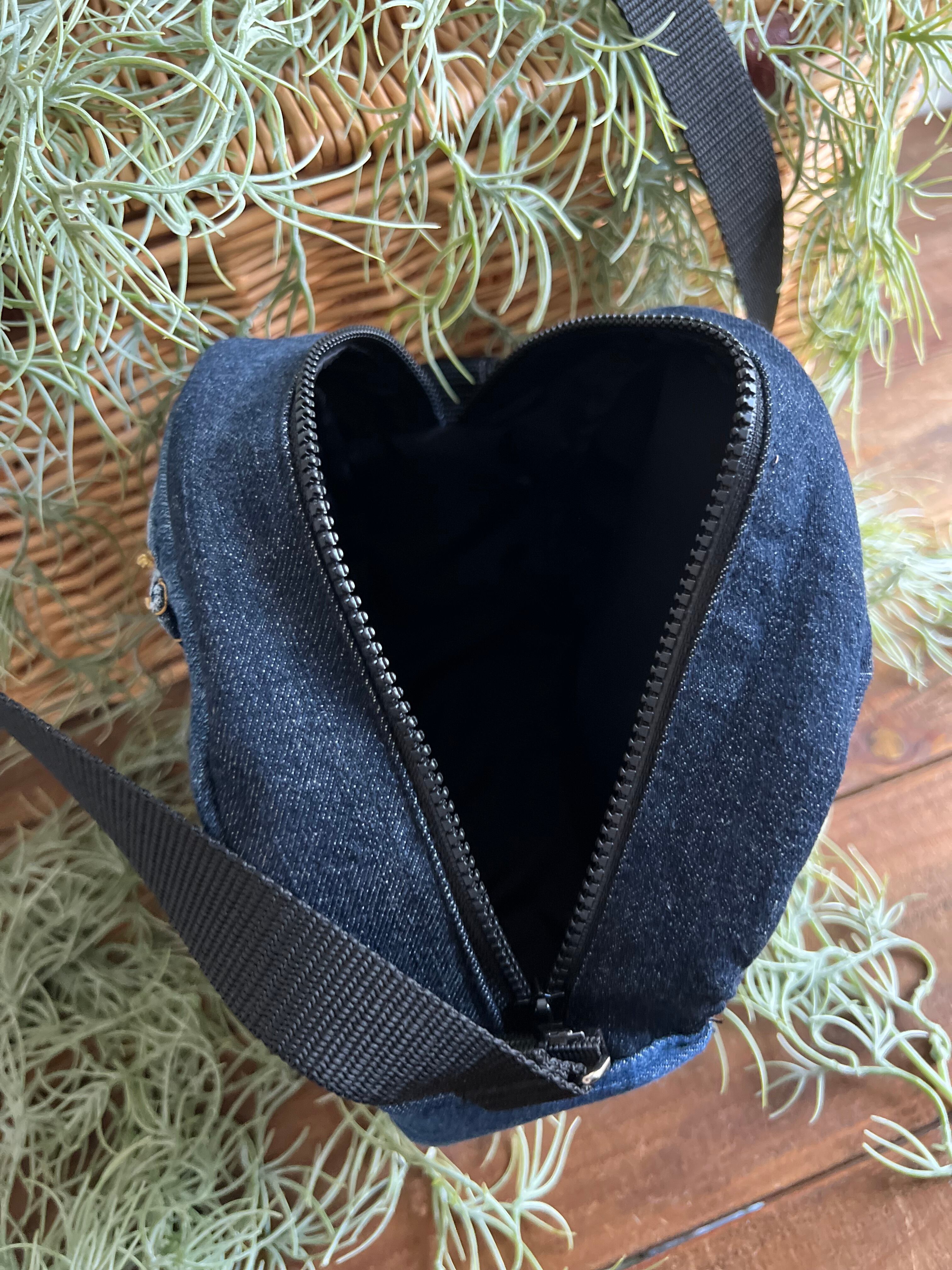 可愛いデニムリメイクのパッチワーク外ポケットあり
