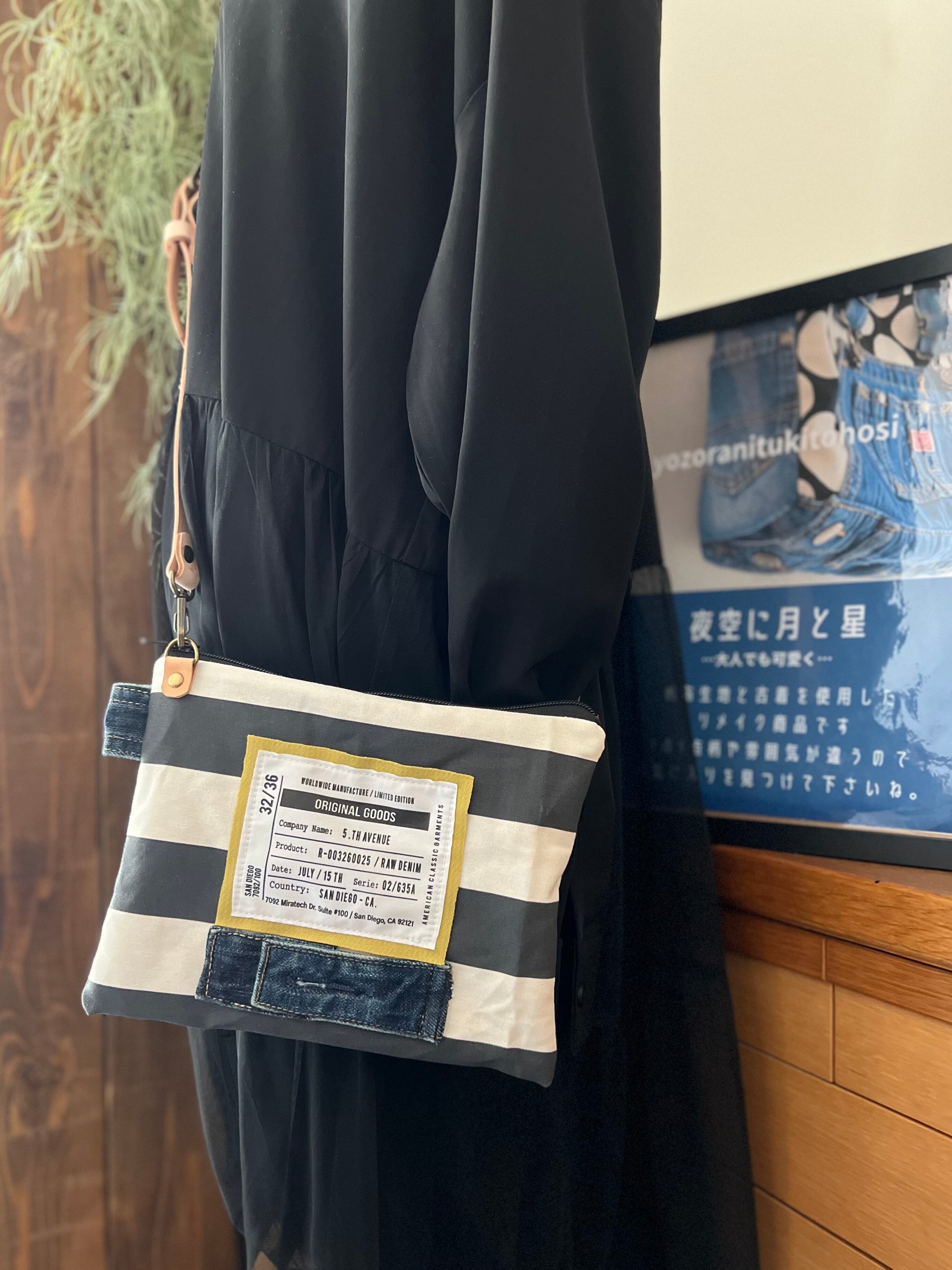 デニムリメイク / デニム / プレゼント / ファッション / オリジナル / ポーチ / デニムバッグ / リメイクポーチ / おしゃれ / カジュアル / 贈り物 / 母子手帳ポーチ / ママデビュー / しましま / ストライプ柄 / ファスナーポーチ / お出かけ / ポケット / 収納 / お薬手帳ケース