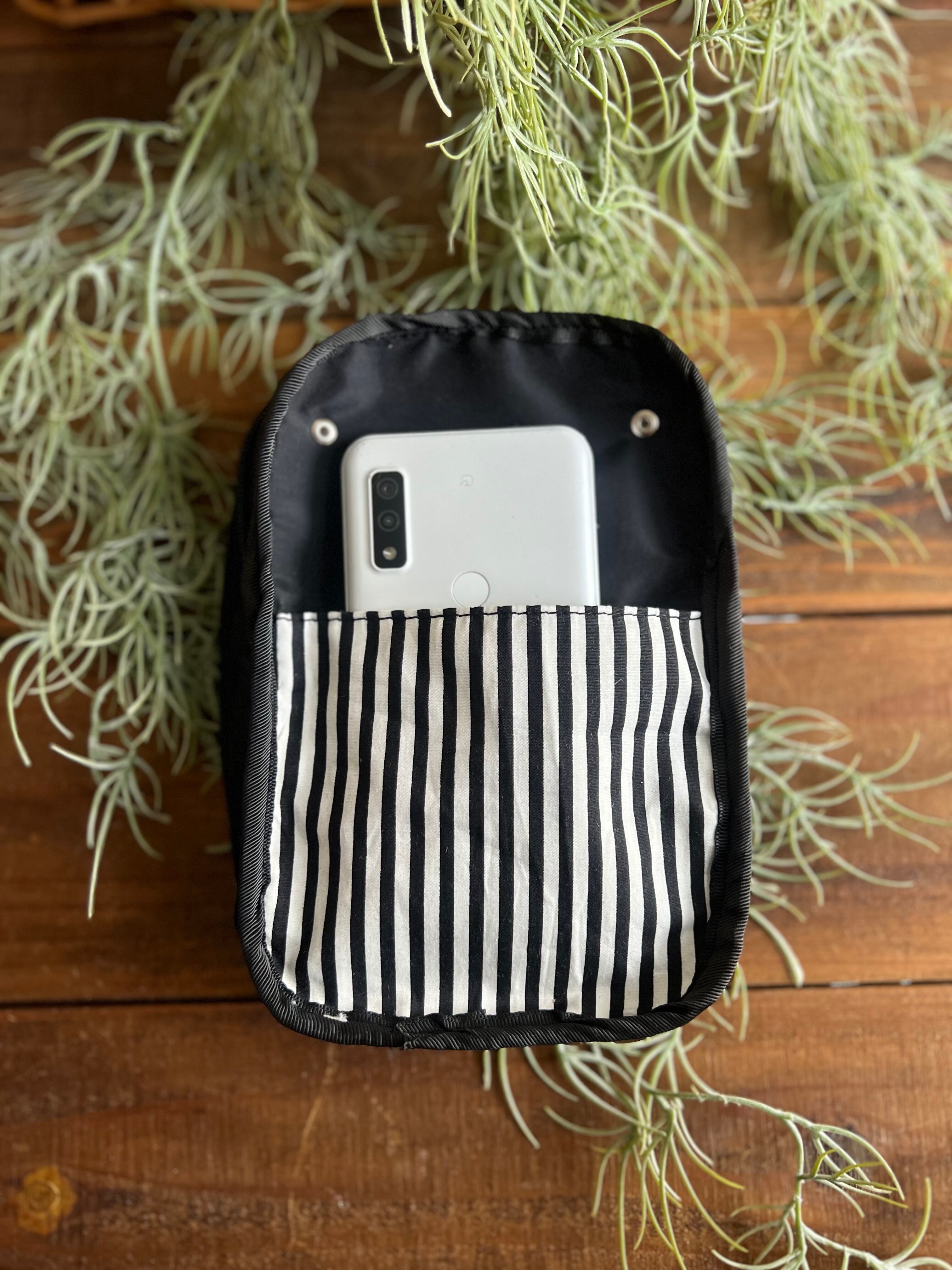 中ポケットはモノトーンストライプでアクセントをつけてみました