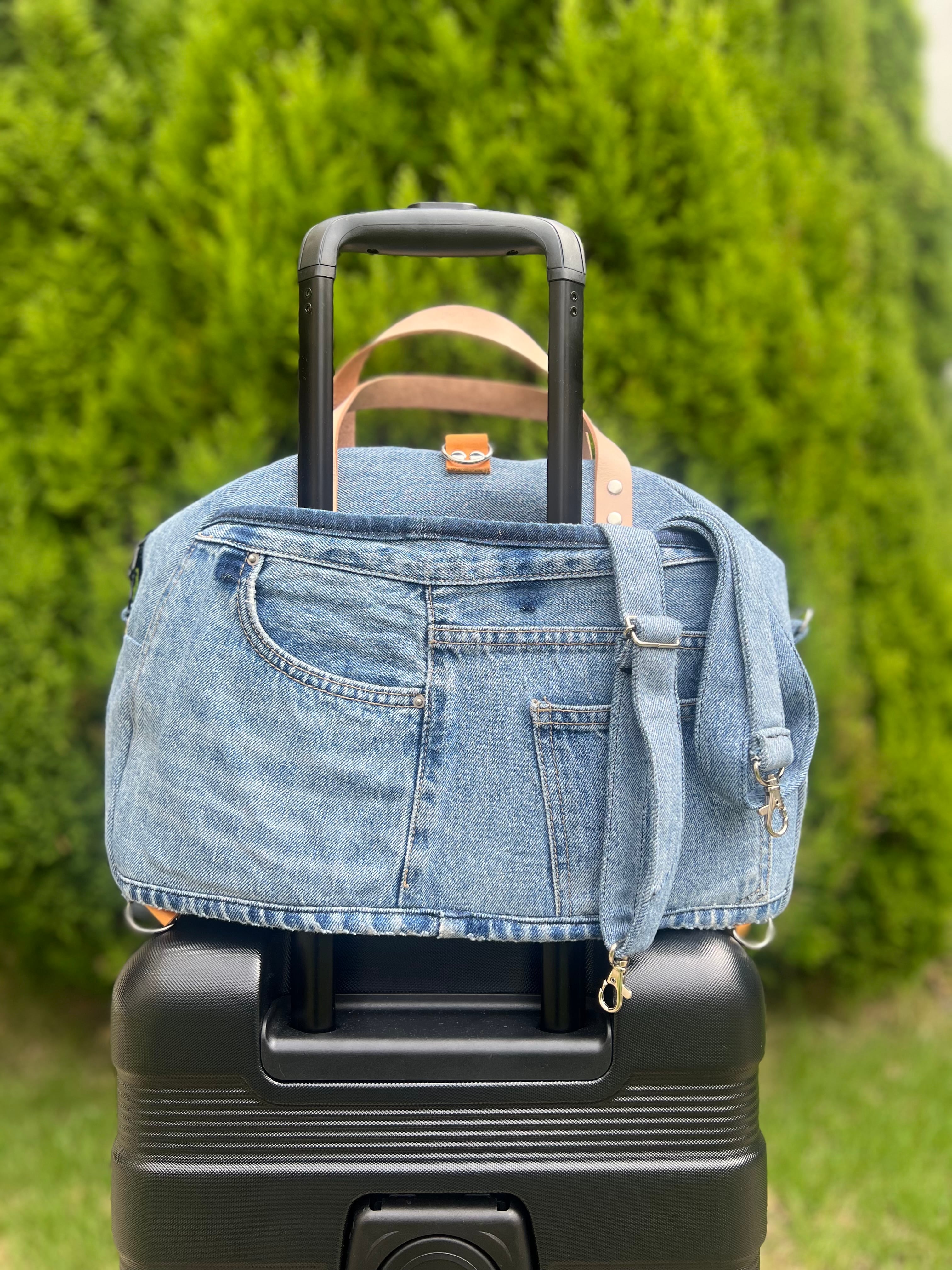 ボストン、リュック、ショルダー、キャリーオン。変幻自在の4WAY DENIM TRAVELER BAG*夜空に月と星