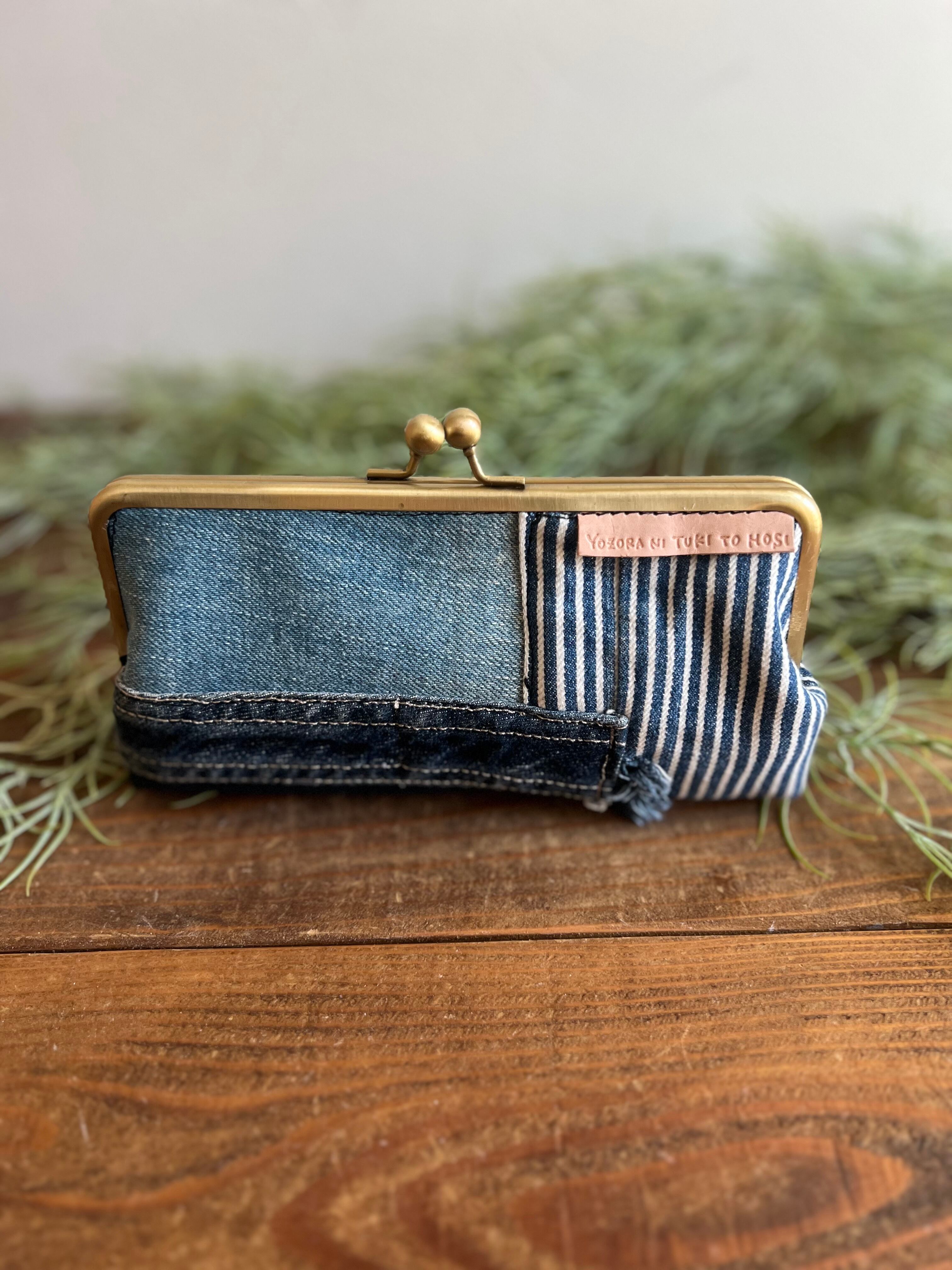 デニムがま口ポーチ デニムリメイク 帆布ポーチ