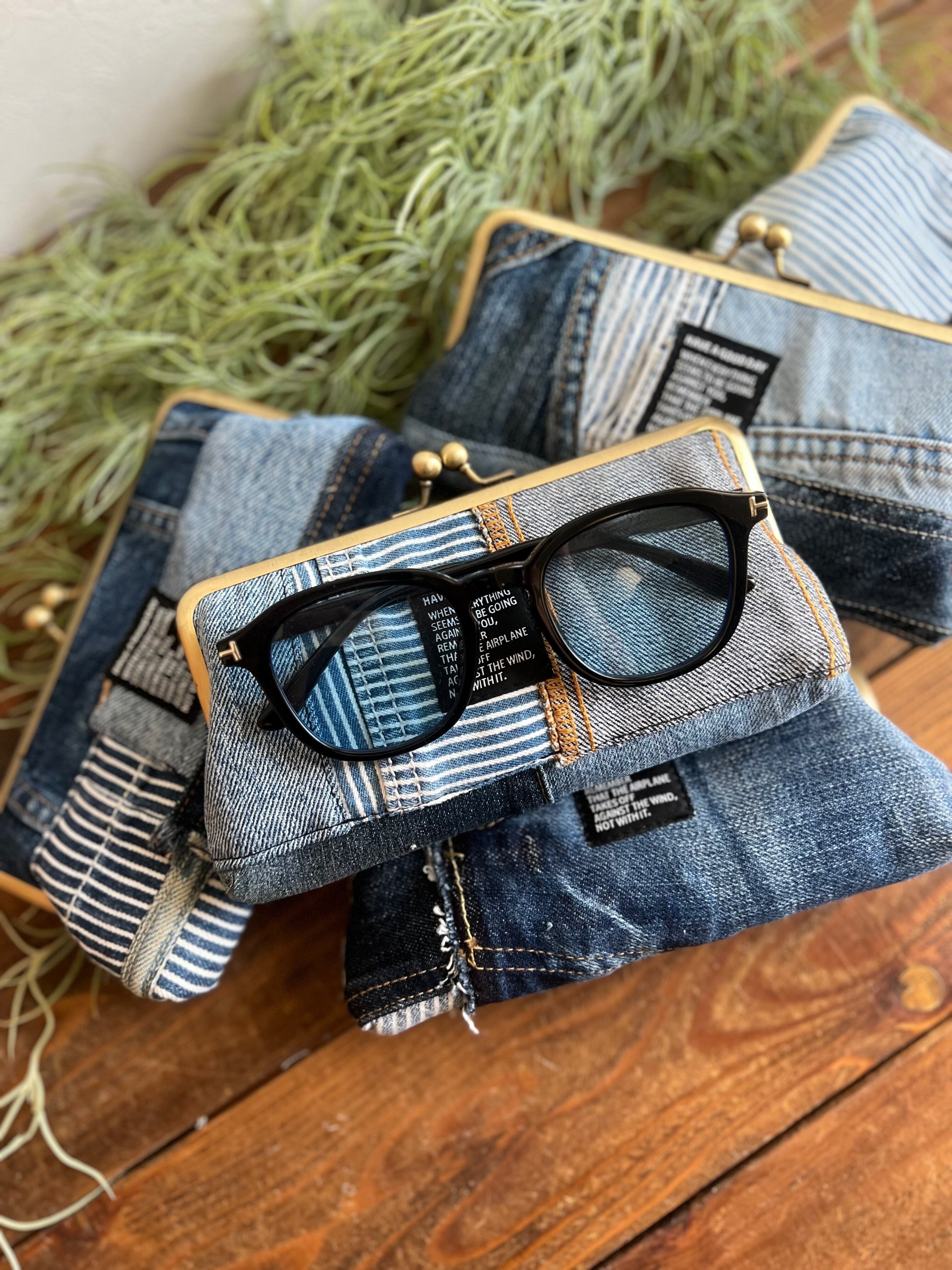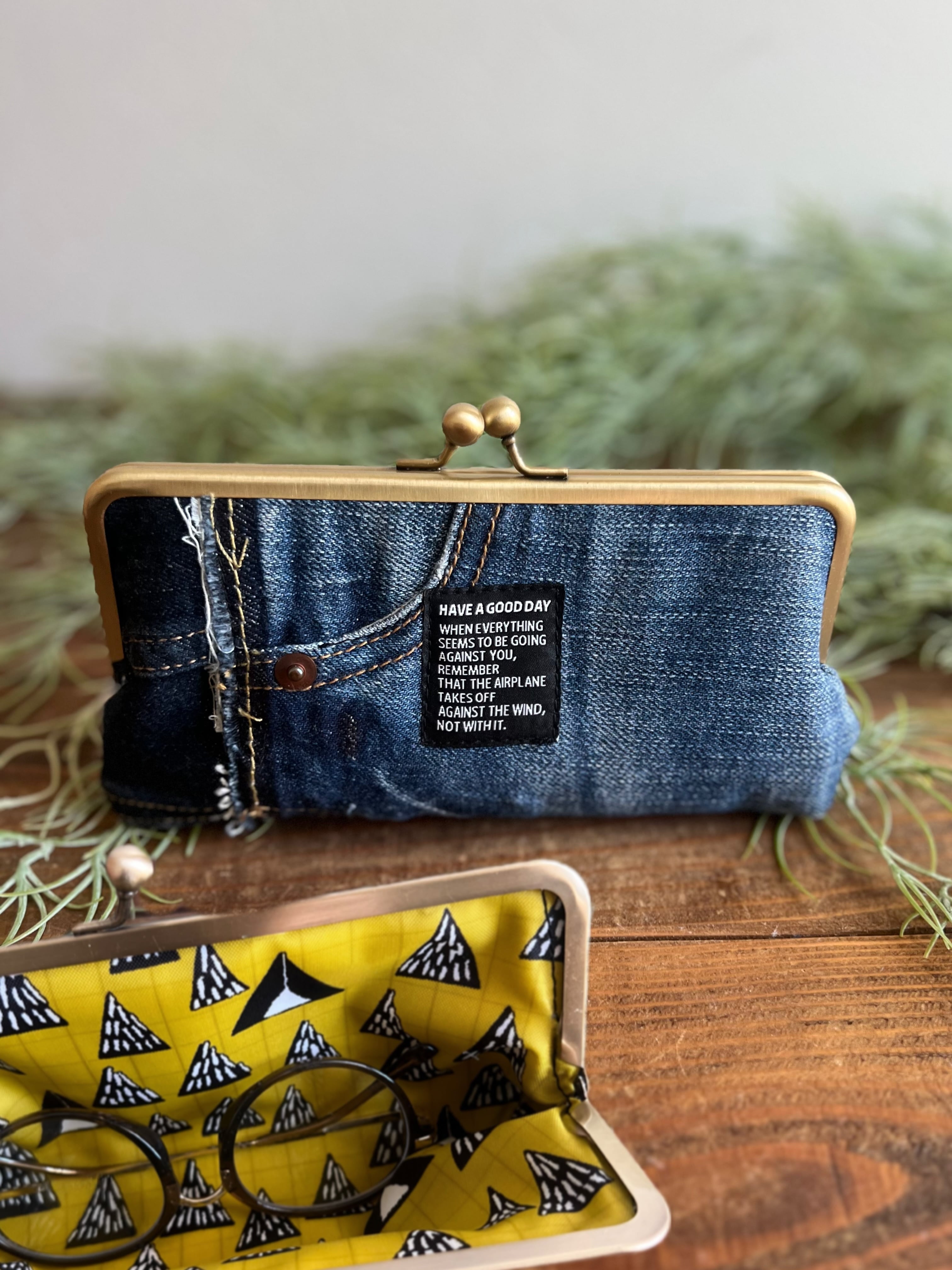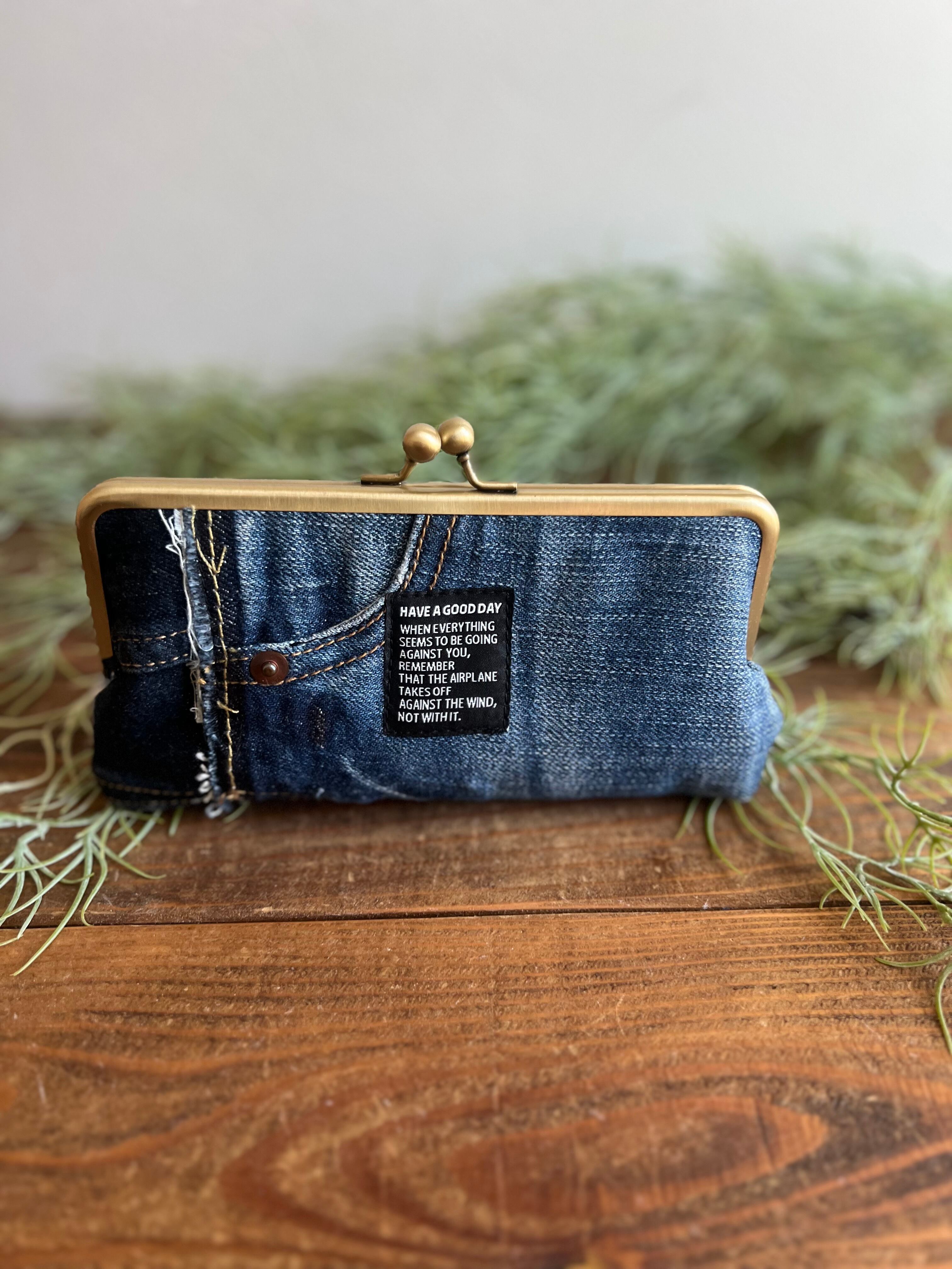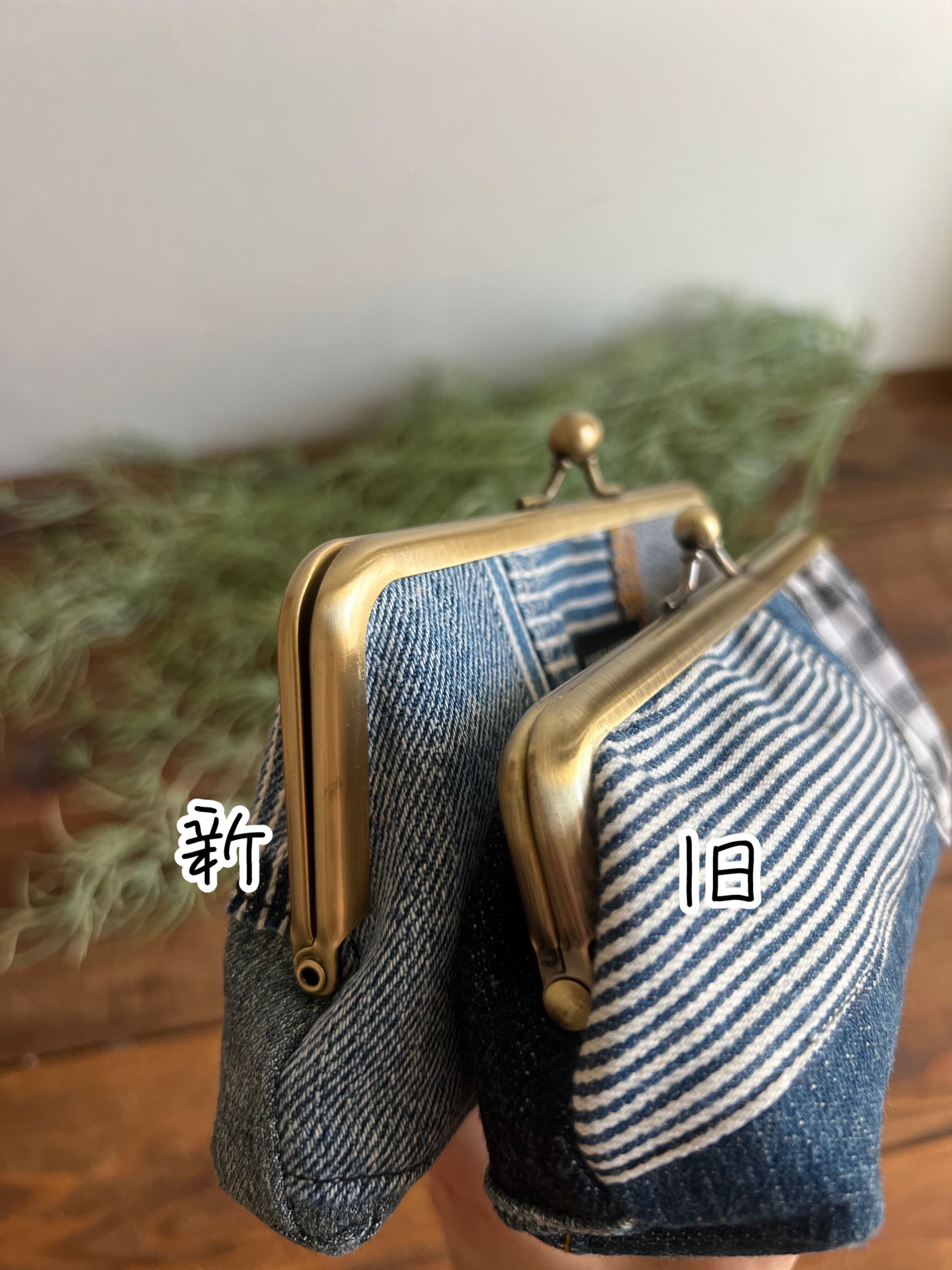 デニムがま口ポーチ デニムリメイク 帆布ポーチ