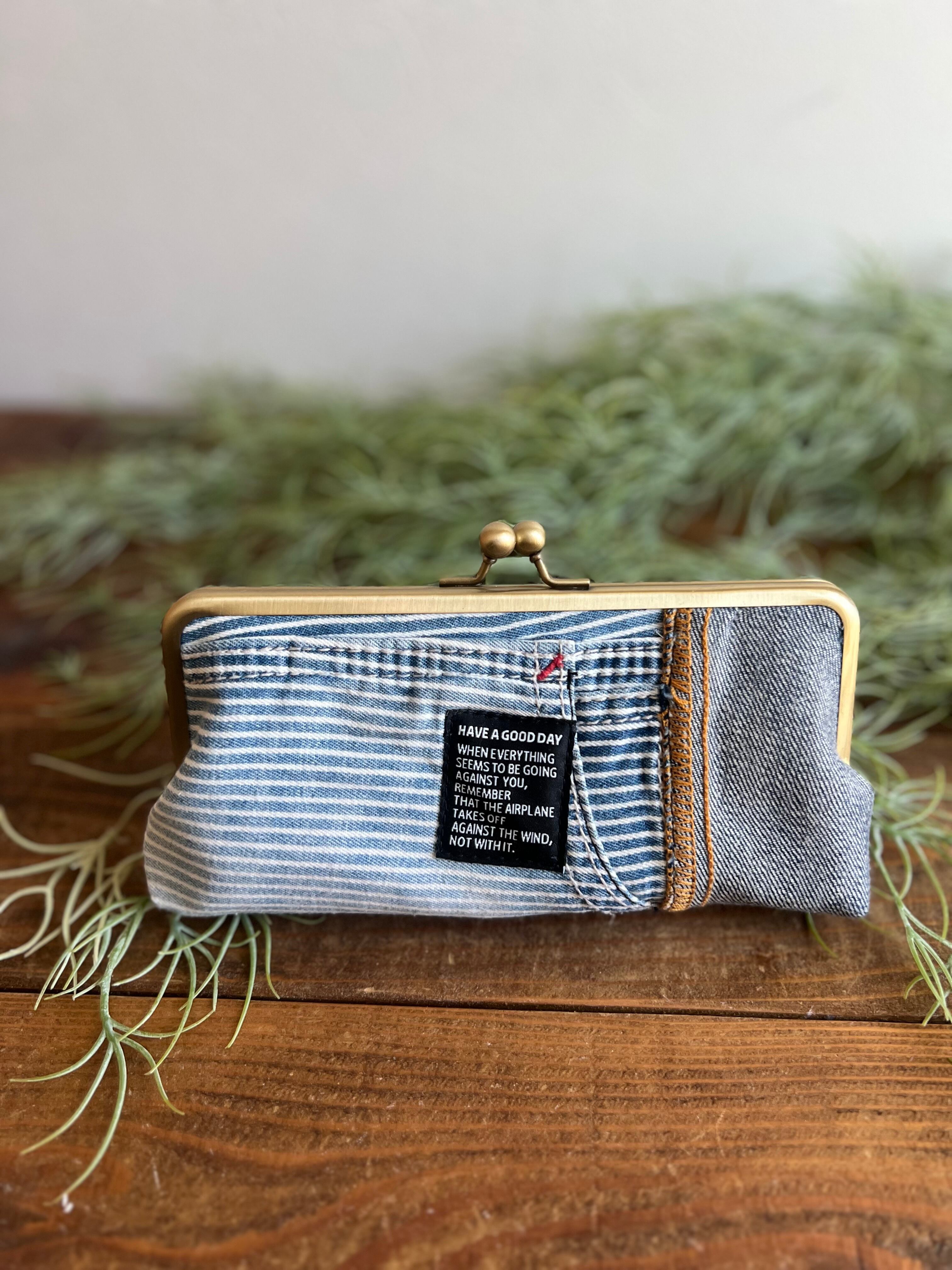 デニムがま口ポーチ デニムリメイク 帆布ポーチ
