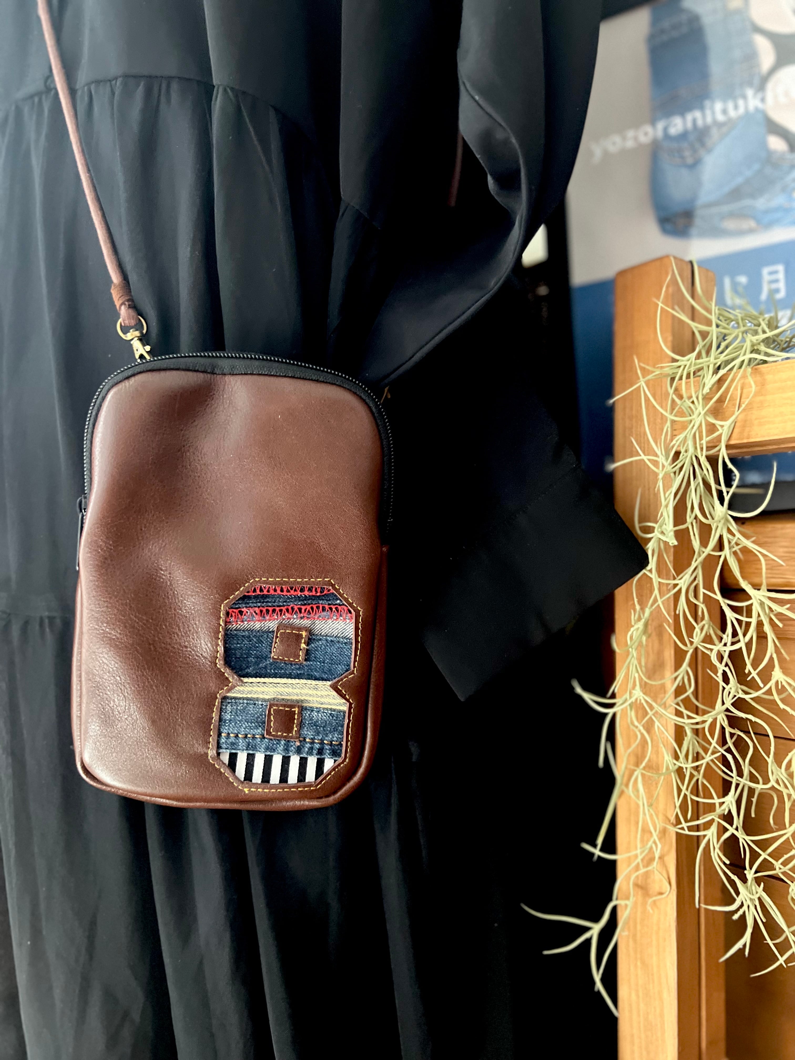 本革/革ポシェット/デニムリメイク / デニム / プレゼント / ファッション / オリジナル /デニムバッグ / リメイクカバン / おしゃれ / カジュアル / 贈り物 / ポケット / 収納 / ファスナー/お出かけ /スマホケース/スマートフォンポシェット/ポーチ/ポーチポシェット