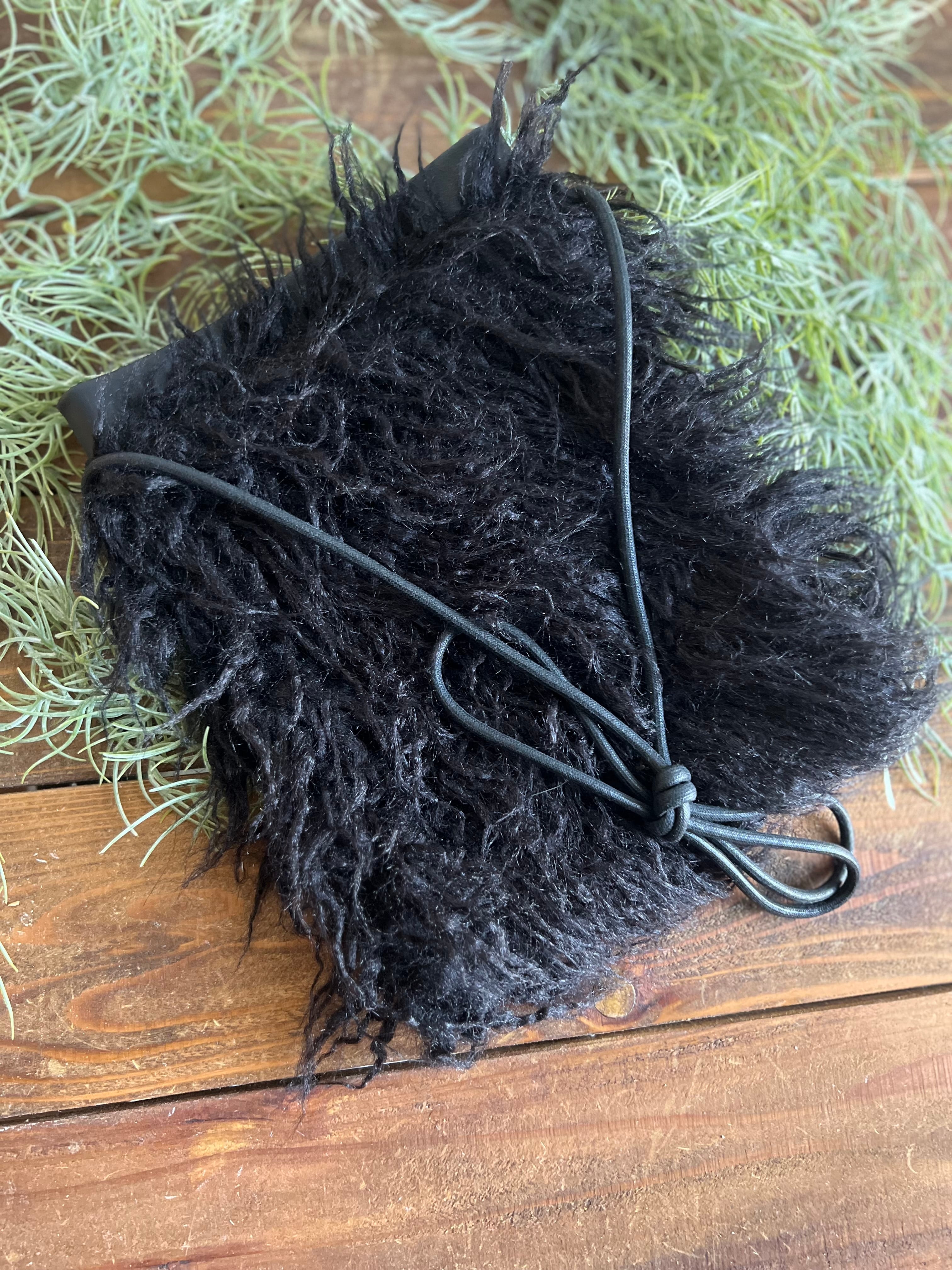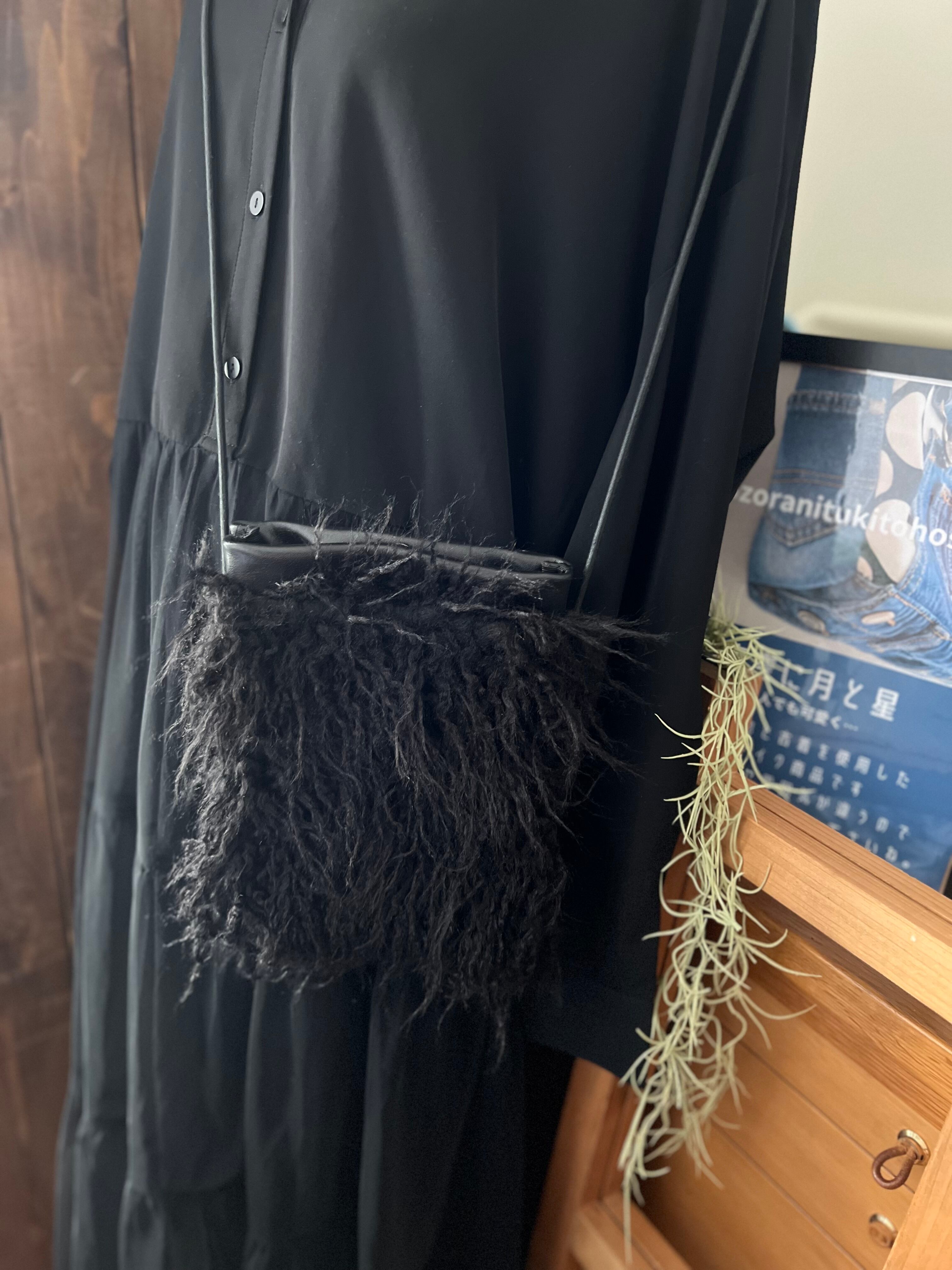 ファーバッグ / 本革バッグ / 黒バッグ / 大人かわいい / 個性派ファッション / ハンドメイドバッグ / 一点もの / ショルダーバッグ / プレゼント / ふわふわ / ブラック