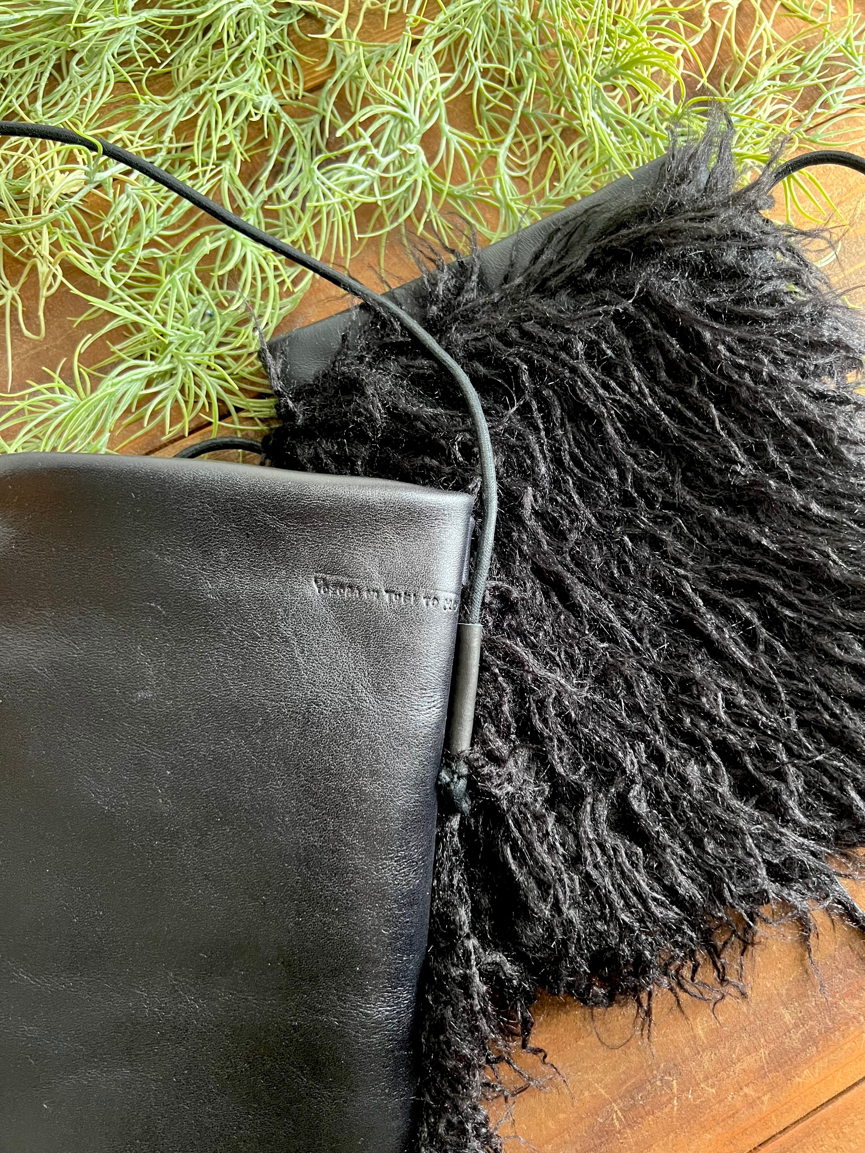 思わず撫でたくなるほど柔らかく、毛足の長いブラックファー×本革を組み合わせた大人のショルダーポシェット。
